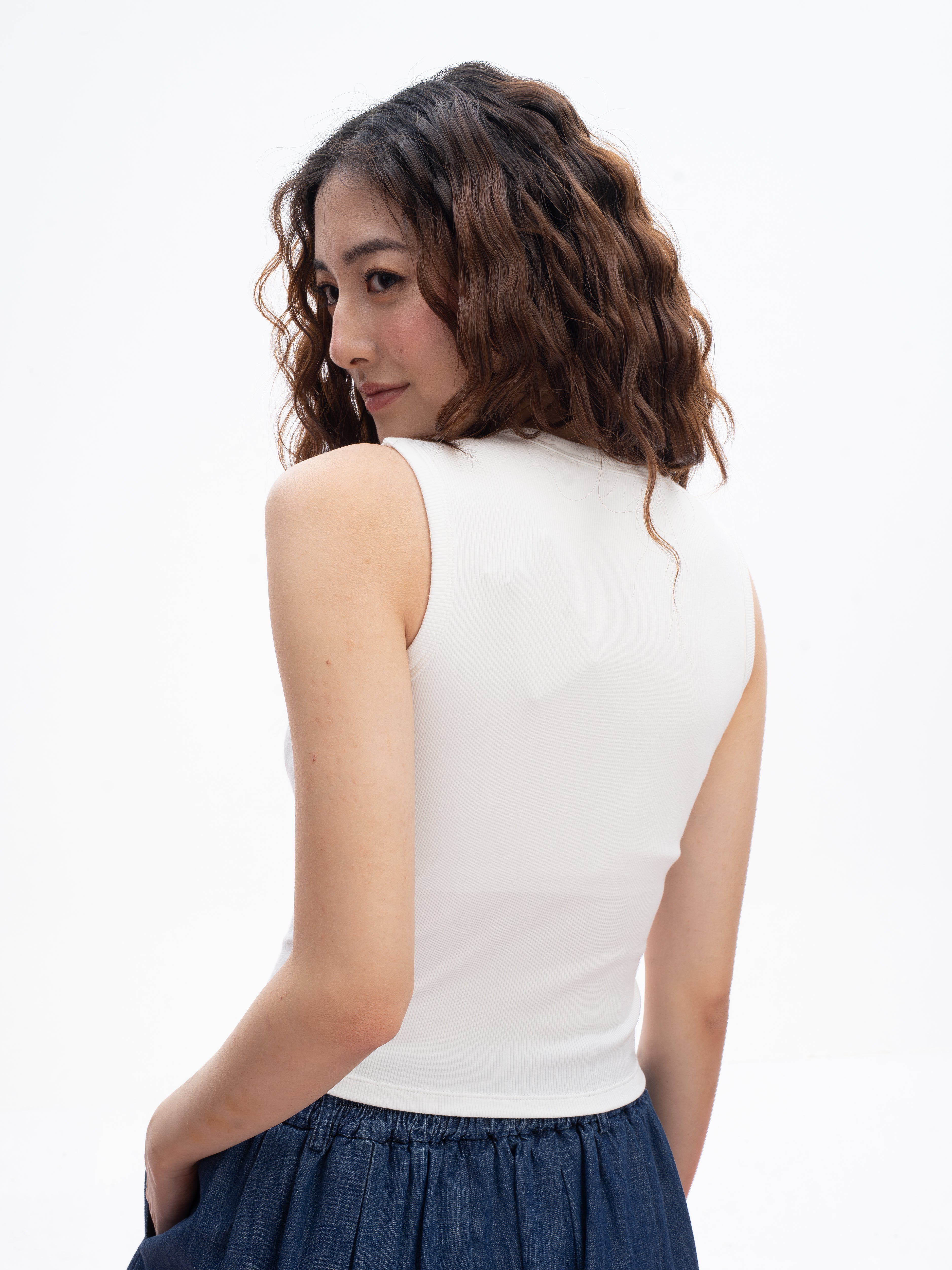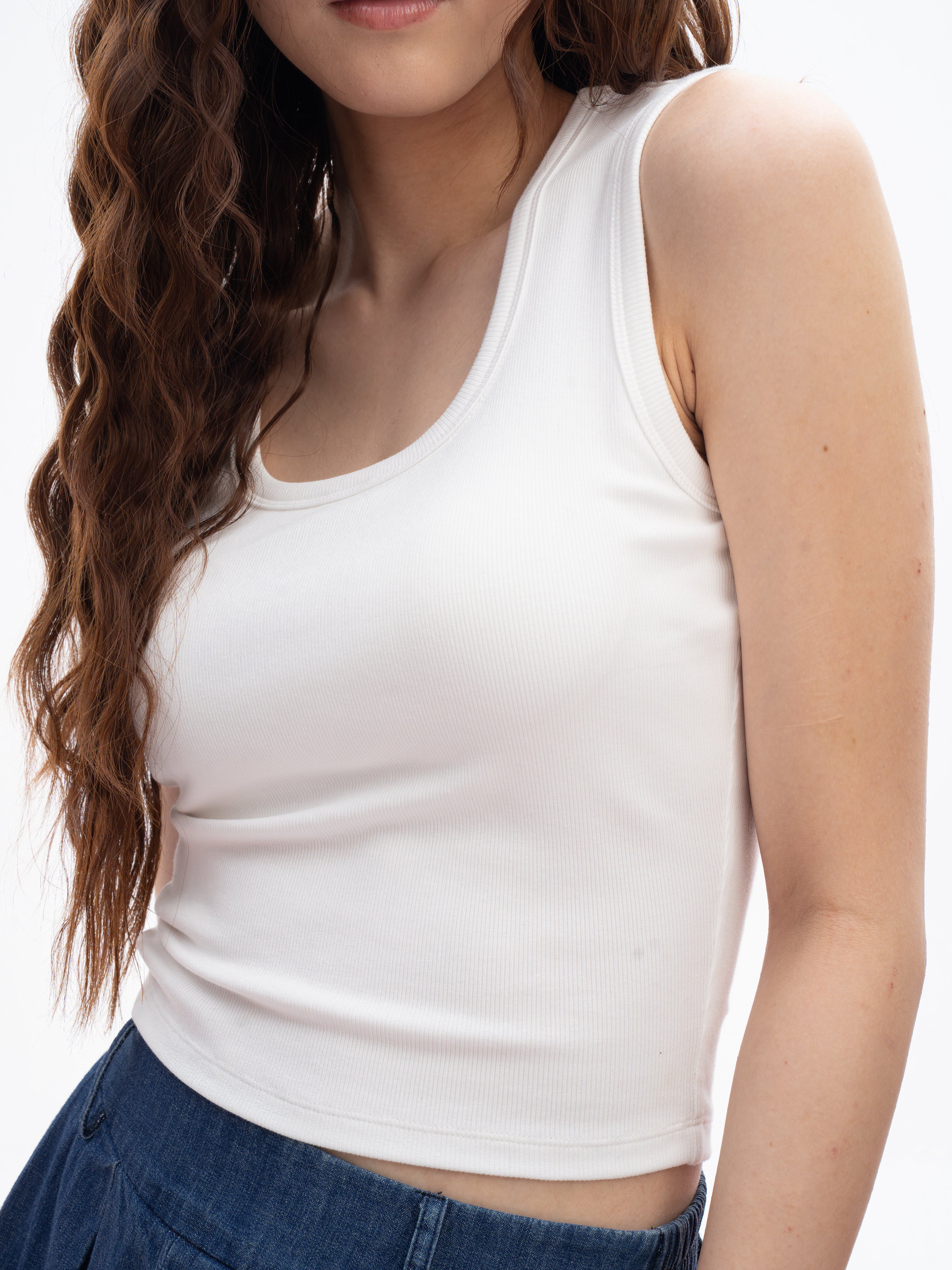 Ribbed Scoop-Neck Padded Tank Top