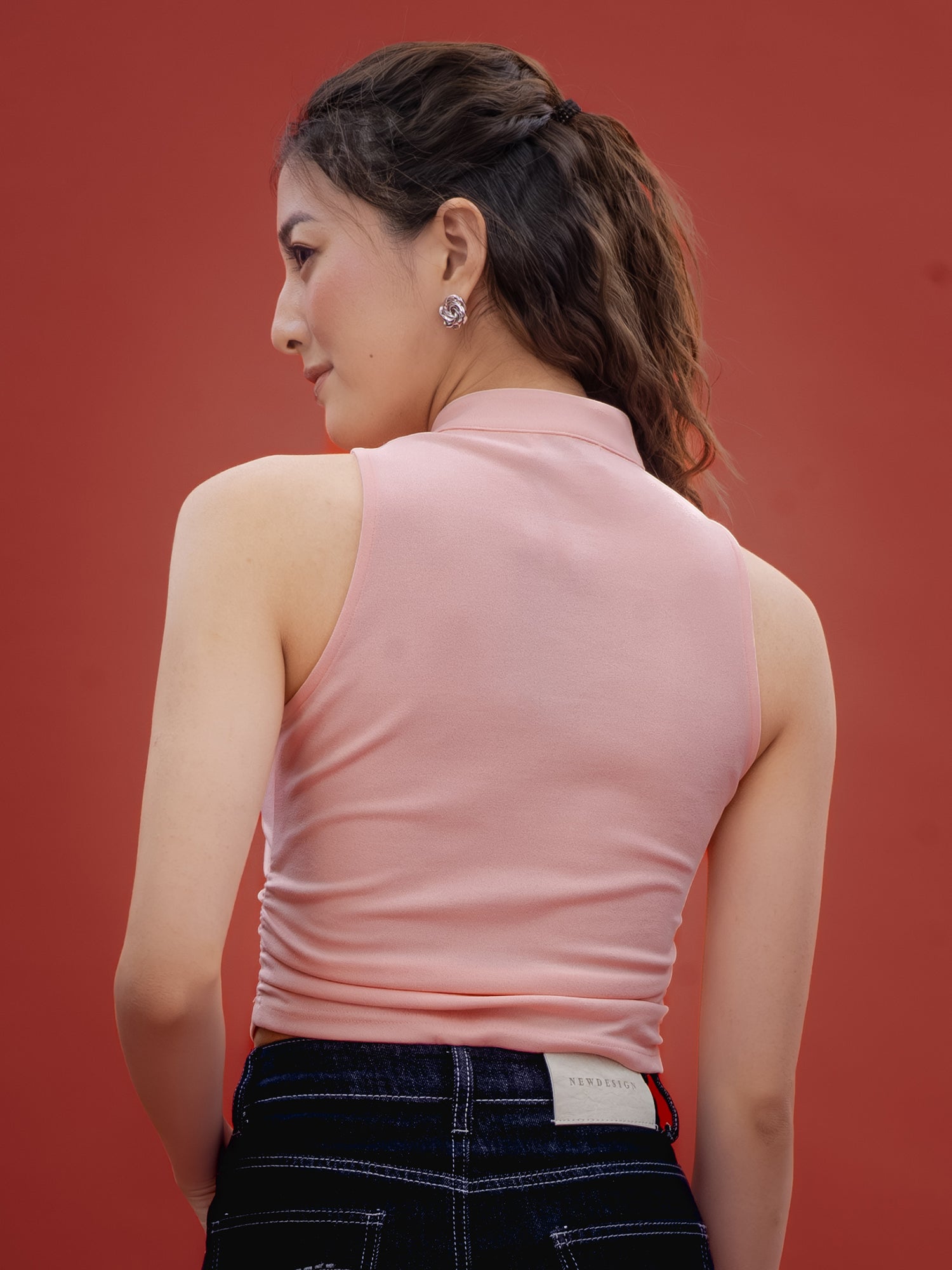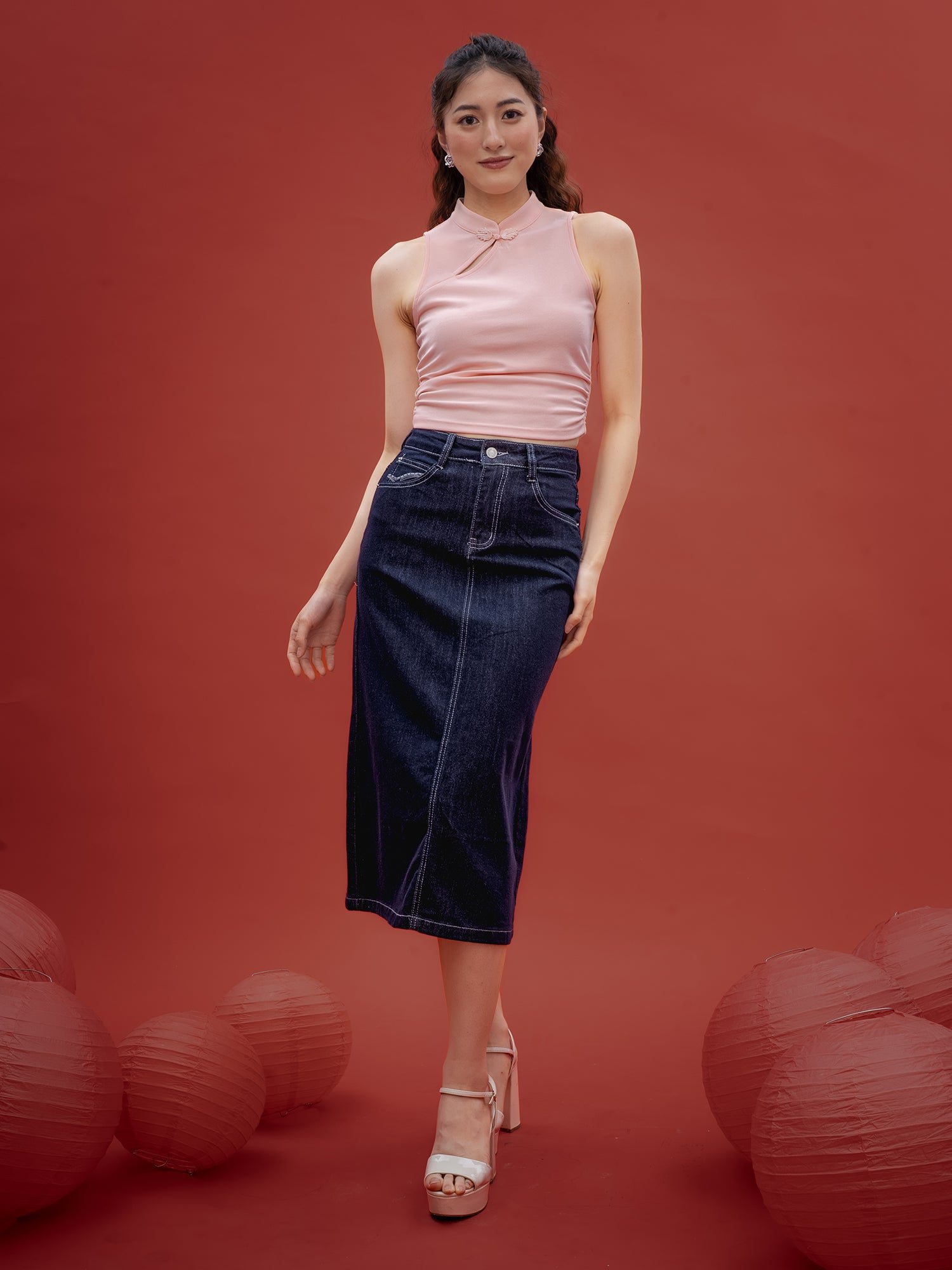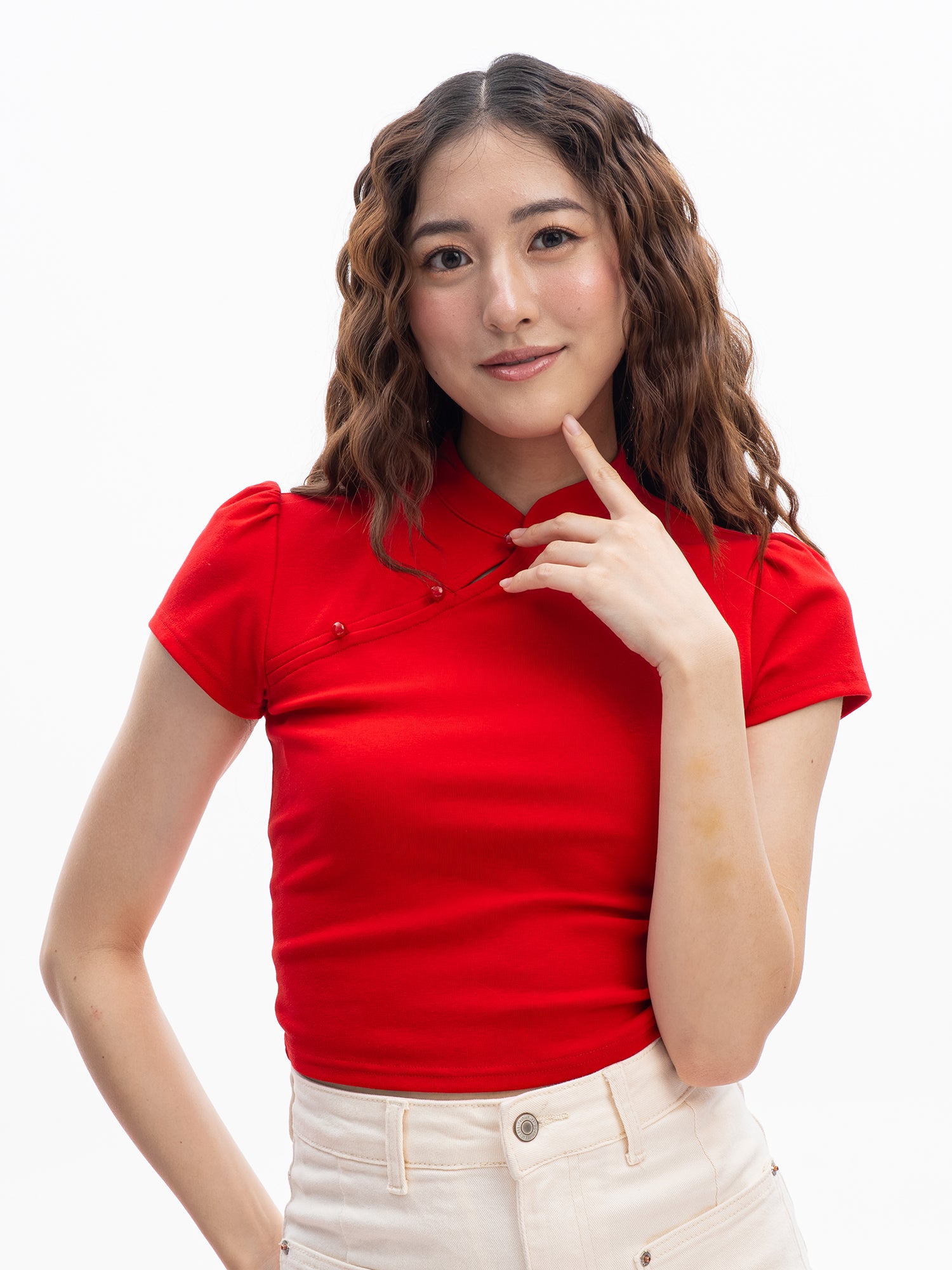Mandarin Collar Keyhole Crop Top