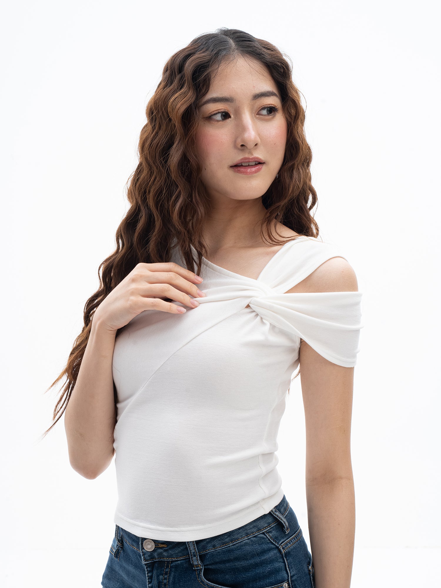 Asymmetric Shoulder Cutout Top